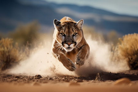 Roaring cougar or mountain lion hunts its prey