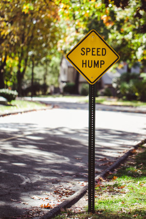 Augusta, Ga USA - 08 20 21: Traffic sign Speed Bump yellow warning
