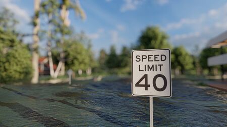 Speed limit sign in city on street Traffic Signs Illegal speeding traffic in capital with car blurred background. Metaphor Traffic to transport management for automobile or automotive car image.