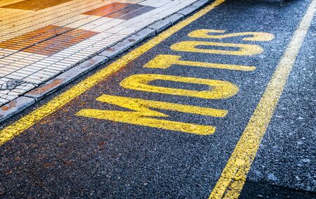 Yellow and black zebra stripes on the road in Bangkok, Thailand