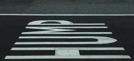 Bus line text on the road, Namur, Belgium.