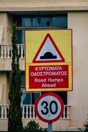 Limassol Cyprus March 20, 2020 View of street sign in the city of Limassol in the afternoon