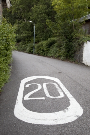 Speed limit 20 painted on asphalt