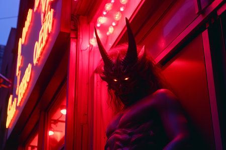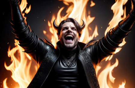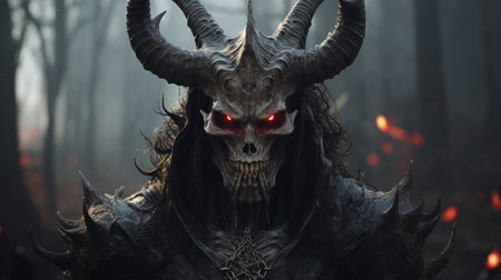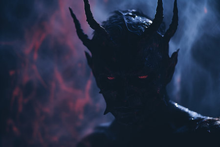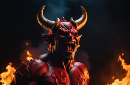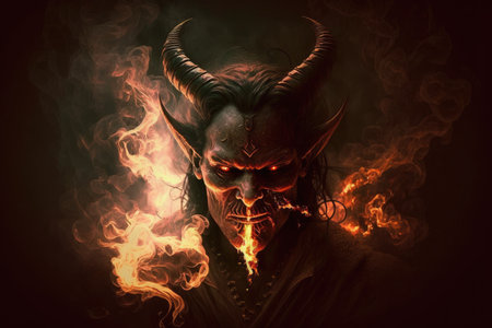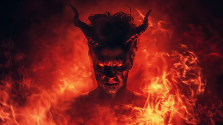 devil, surrounded by fiery flames of hell, casting his evil eye upon mortal souls, created with generative ai