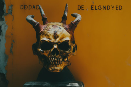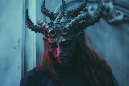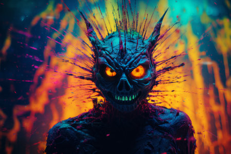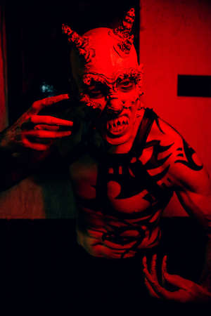 A portrait of a bad demon over the grunge background. Horror movie, nightmare. Halloween.