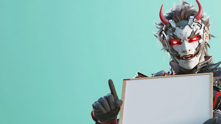A captivating image of an Oni character, a Japanese demon, holding a whiteboard and pointing, perfect for creative projects.