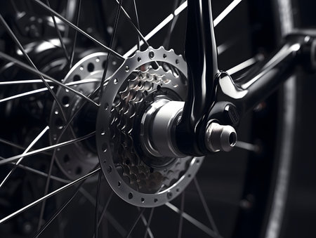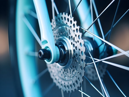 close-up of spinning bicycle wheel and gears in motion, created with generative ai