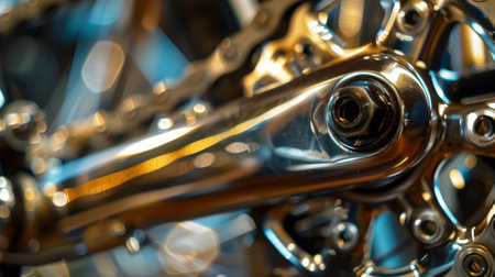 A macro shot of the shiny metal bolts and screws holding the components of the bicycle together a testament to the attention to detail and highquality materials used in its construction