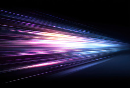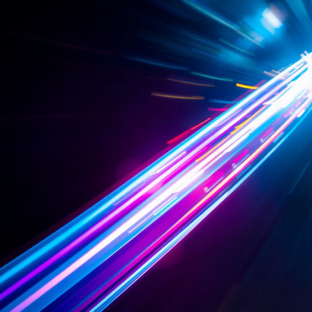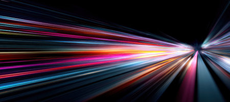 This vibrant image features colorful light trails in motion against a dark background, perfect for themes of technology, innovation, and energy.
