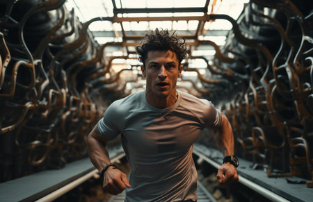 lifestyle fitness run healthy sport male person athletic exercise fit. Generative AI.
