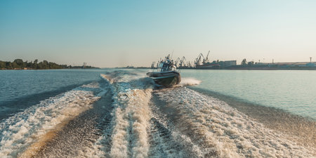 speedy rapid little boat passing by