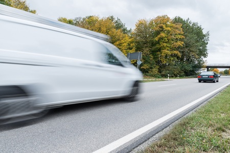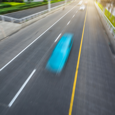 car and trunk motion blur on the road in day