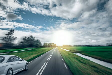 Car on the road with motion blur background