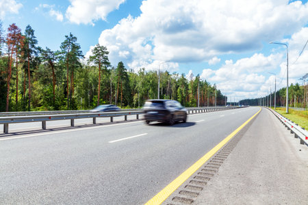 Fast moving blurry cars driving on the highway. European highway traffic at blurry motion. Motorway traffic in the Czech Republic.