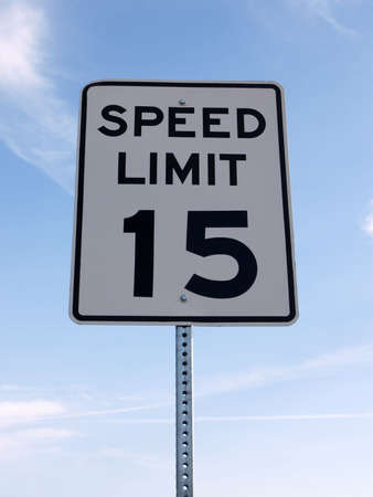 Fifteen mph speed limit sign with a sky background