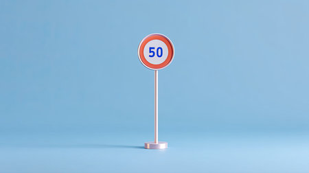 This image features a minimalistic speed limit sign displaying 50 against a soft blue background, ideal for presentations on traffic safety and awareness.