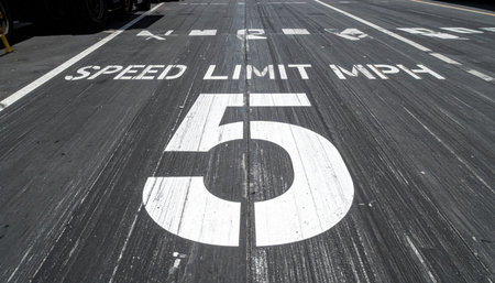 Speed limit sign painted on the asphalt