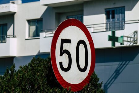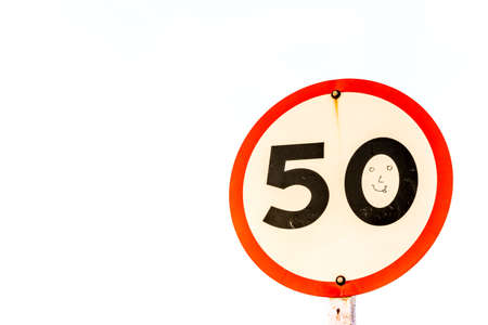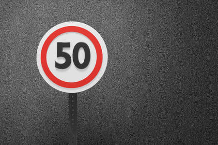 Fifty traffic sign. 50 miles per hour speed limit sign round red