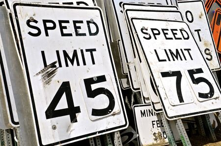 Stacks of traffic signs in storage determining highway speed limits