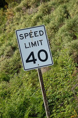 american speen imit sign with 40 mph against green hillside