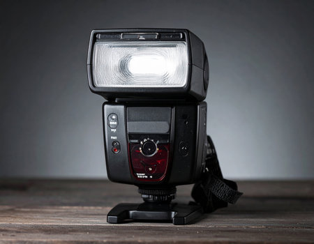 close up of digital modern photo flash for camera black