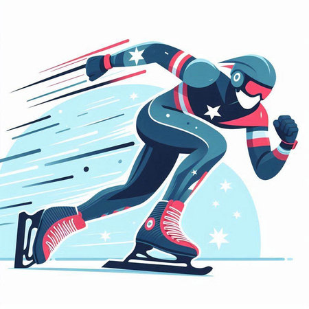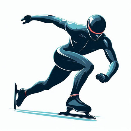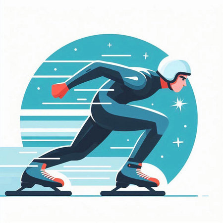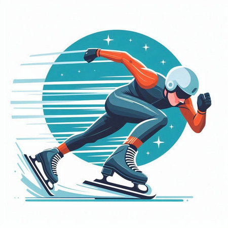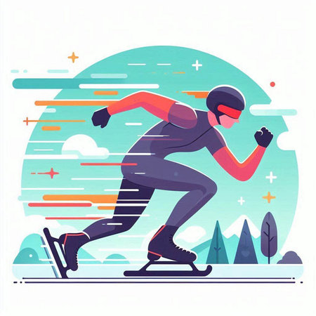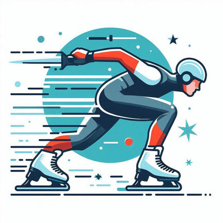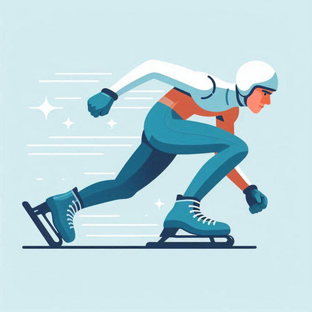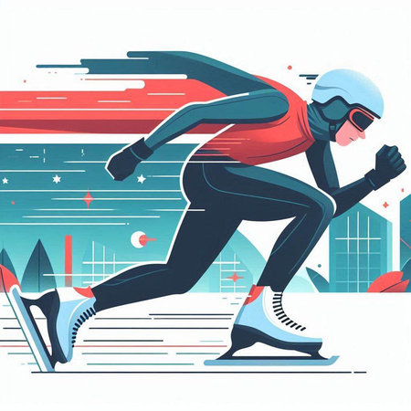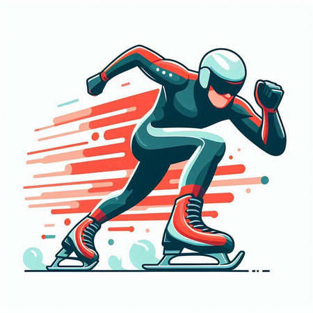 Speed skating sport vector illustration. Athlete running on the ice track.