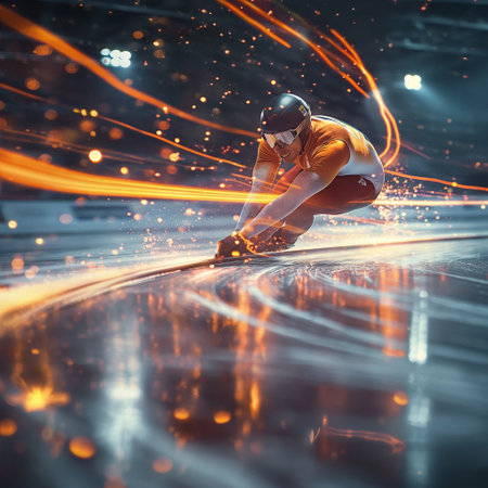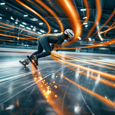 speed skating dynamic wallpaper with colorful light trails on a dark background. speed skating banner