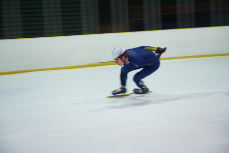 men athlete to sprint speed skating. speed skating indoors