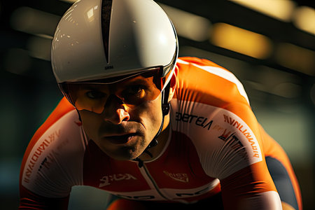 Certain cyclists train at sunny velodrome., generative AI