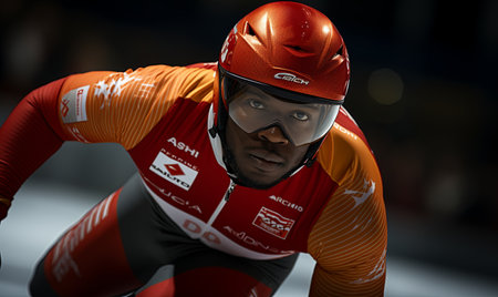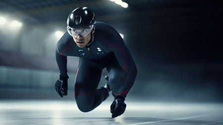 AI Generative Winter Olympics Short Track Competition, Man Athlete skater skate On Ice Skating Rink