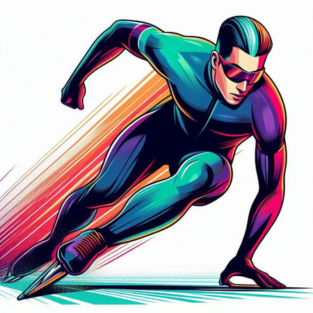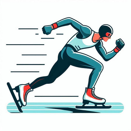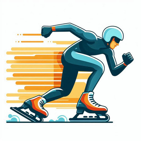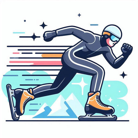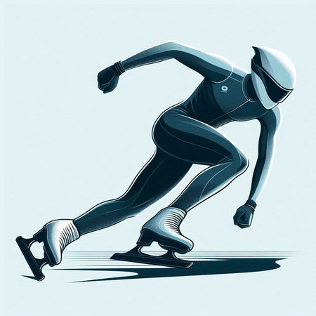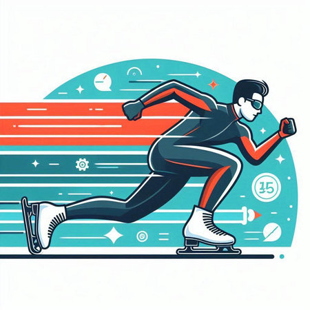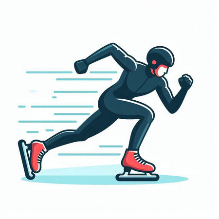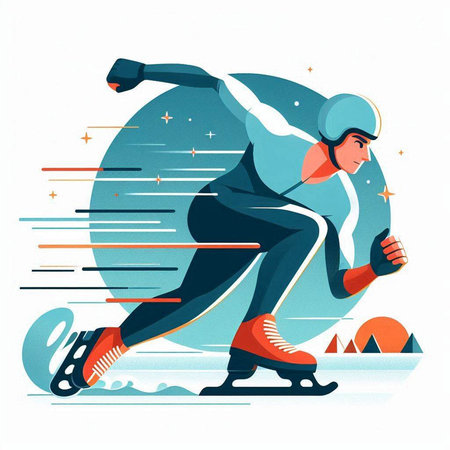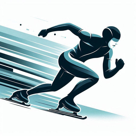 Speed skating - vector illustration of a man running fast on a race track