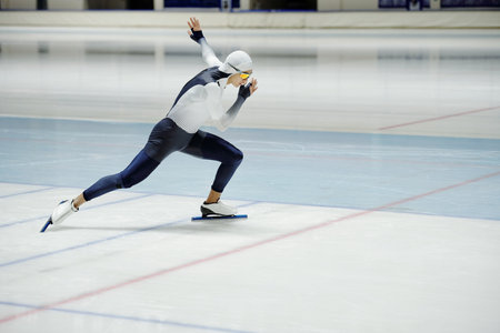 speed skating competition. motion blur speed skater athlete