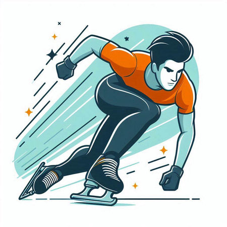 Speed skating sport vector illustration. Cartoon figure skater man figure skating.