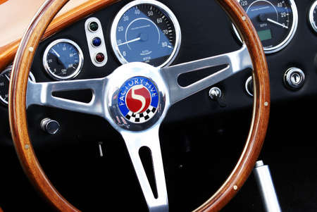 Sportscar dashboard closeup with speedometer