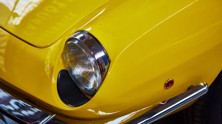 Detail of classic car. Close-up of headlight