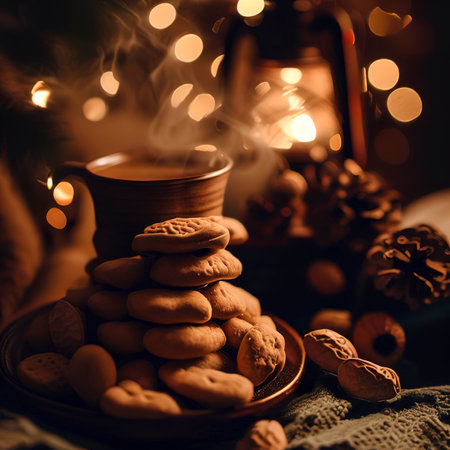 Discover a charming rustic table setting showcasing a delightful assortment of cookies and beautifully wrapped gifts, infused with a warm, inviting atmosphere.