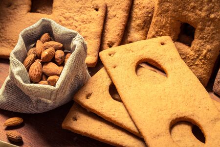 Traditional german christmas cookies called Spekulatius, sweetness with almonds and spices like cinnamon and star anise