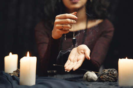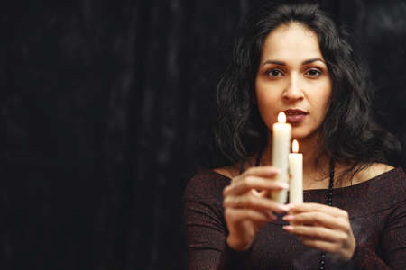 Sorceress gain insight into situation by way of an occultic, process or ritual with black burning candle