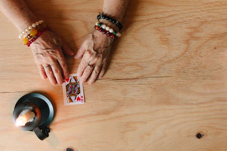 Guessing cards reading, grandma magic, fortune telling, women hands, destiny prediction