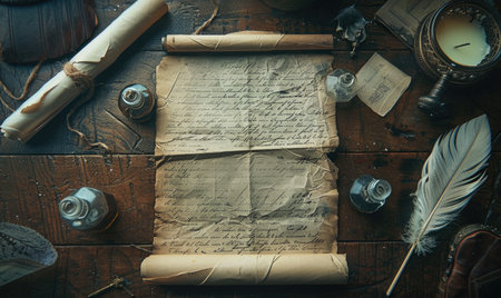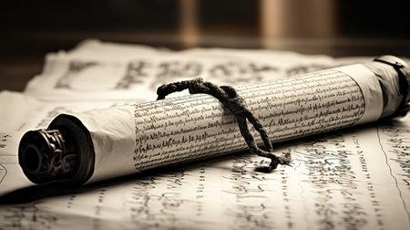 Explore the beauty of ancient scrolls featuring intricate writings. The rustic texture and warm tones evoke a sense of history and knowledge.