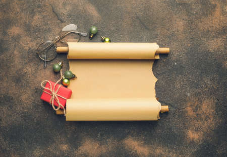 Ancient scroll parchment over old paper background. Ancient scroll of paper with place for text