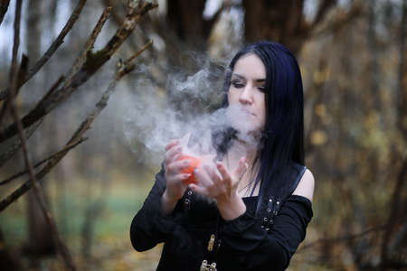 The witch with magic ball in her hands causes a spirits