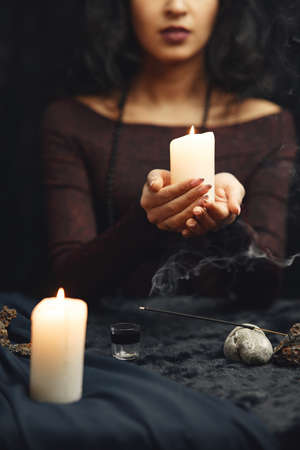 Sorceress gain insight into situation by way of an occultic, process or ritual with black burning candle