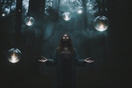 a woman holding glowing orbs in her hands