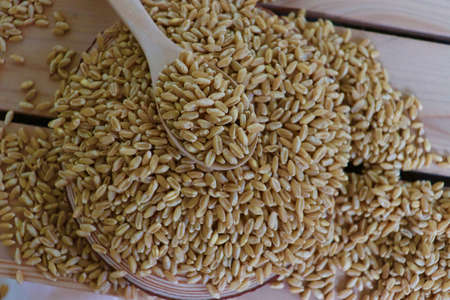 Karakilcik Organic Wheat Grains Seed in Spoon. Traditional Food.