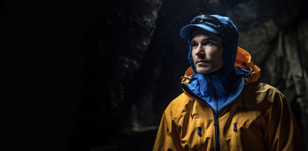 A man is standing in a cave holding a rope. This image can be used to depict adventure, exploration, or overcoming obstacles.