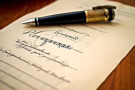 Classic fountain pen is shown resting on a sheet of paper with elegant cursive handwriting