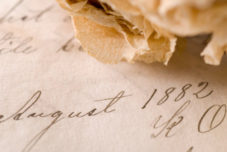 Old document from 1882 with a dried rose.