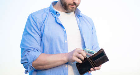 Money in the wallet. Keep a wallet with money. Outstretched hands with money.