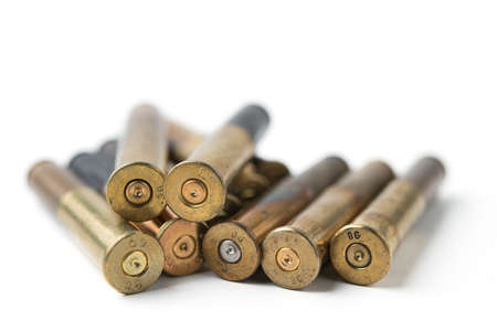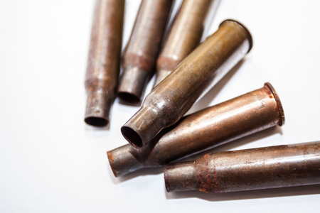 Empty bullet shells on a white background